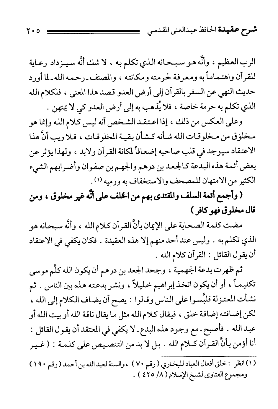 1 انظر: خلق أفعال العباد للبخاري " رقم 70 "، والسنة لعبد الله بن أحمد " رقم 190 "، ومجموع الفتاوى لشيخ الإسلام " 8/425 "