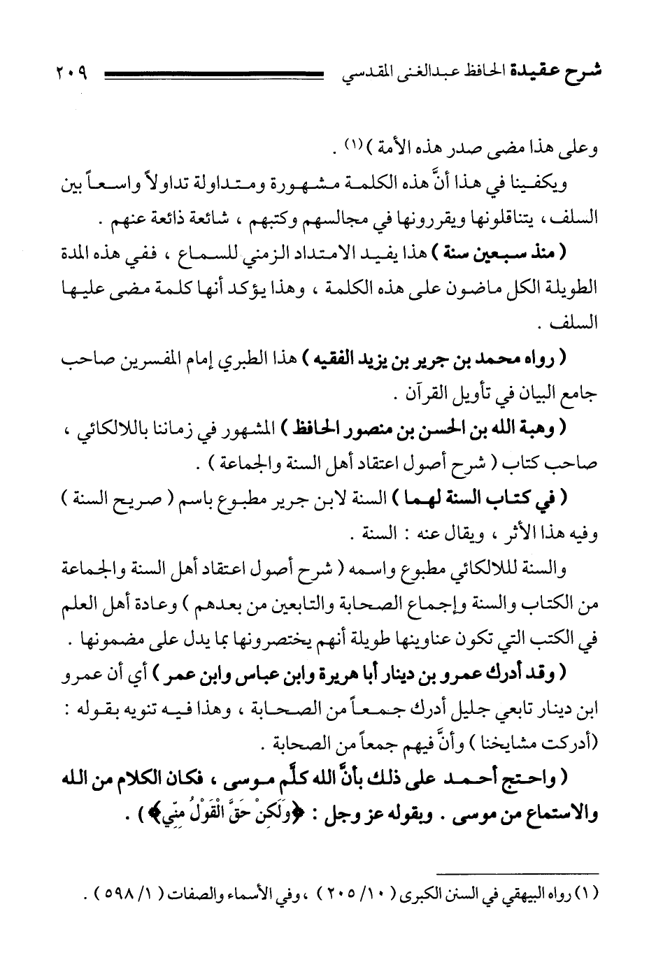كتاب تذكرة المؤتسي شرح عقيدة الحافظ عبد الغني المقدسي