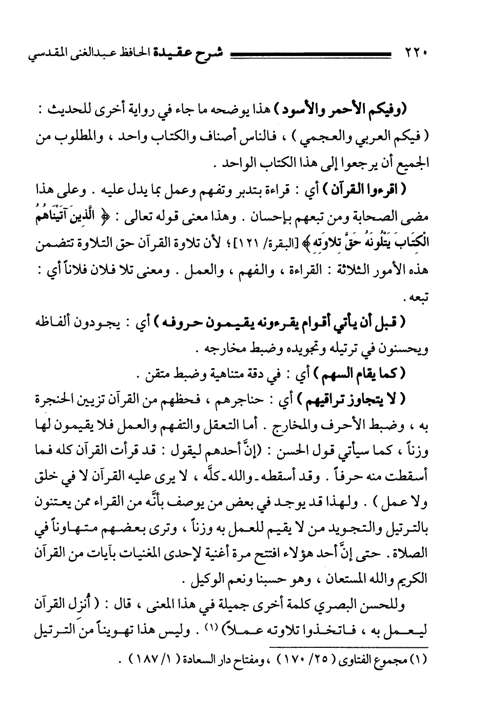 كتاب تذكرة المؤتسي شرح عقيدة الحافظ عبد الغني المقدسي