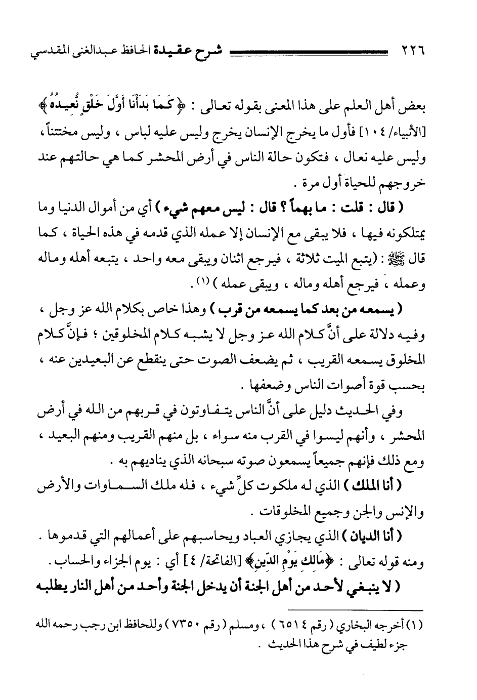كتاب تذكرة المؤتسي شرح عقيدة الحافظ عبد الغني المقدسي