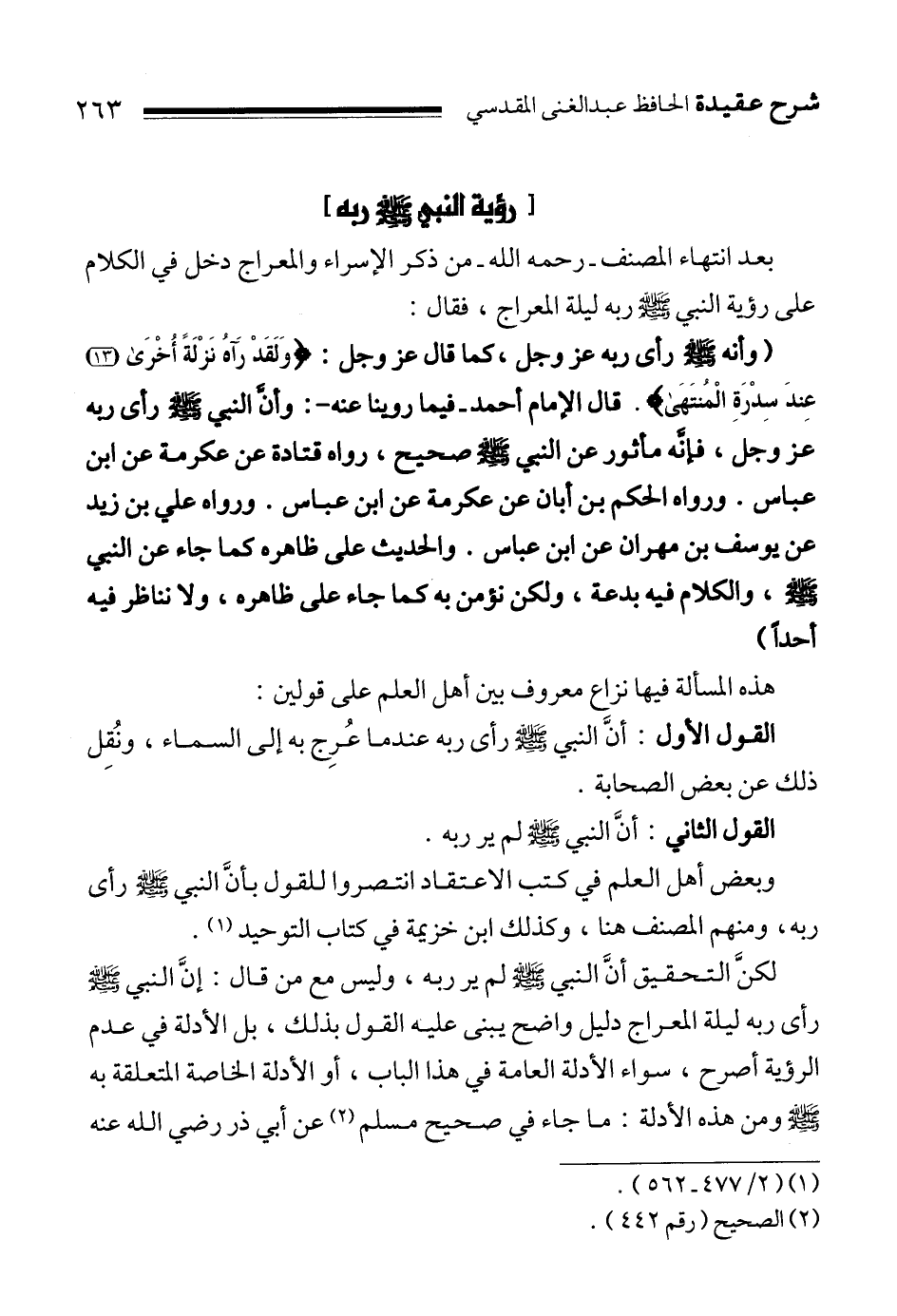 بعد انتهاء المصنف ـ رحمه الله ـ من ذكر الإسراء والمعراج دخل في الكلام على رؤية النبي صلى الله عليه وسلم ربه ليلة المعراج، فقال: