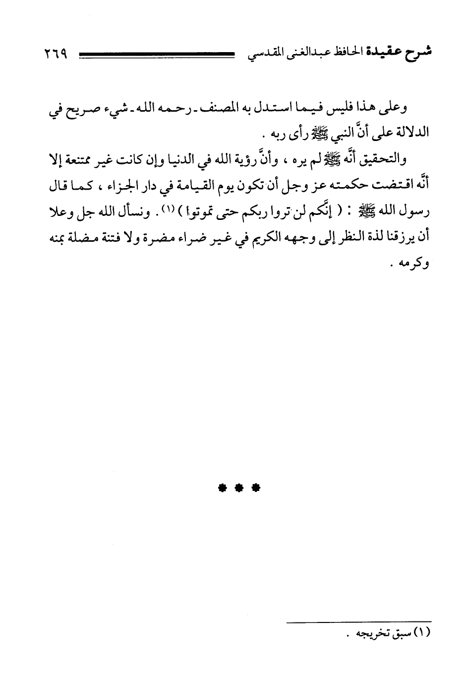 وعلى هذا فليس فيما استدل به المصنف ـ رحمه الله ـ شيء صريح في الدلالة على أنَّ النبي صلى الله عليه وسلم رأى ربه.