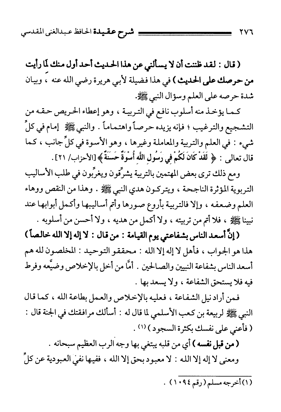 كتاب تذكرة المؤتسي شرح عقيدة الحافظ عبد الغني المقدسي