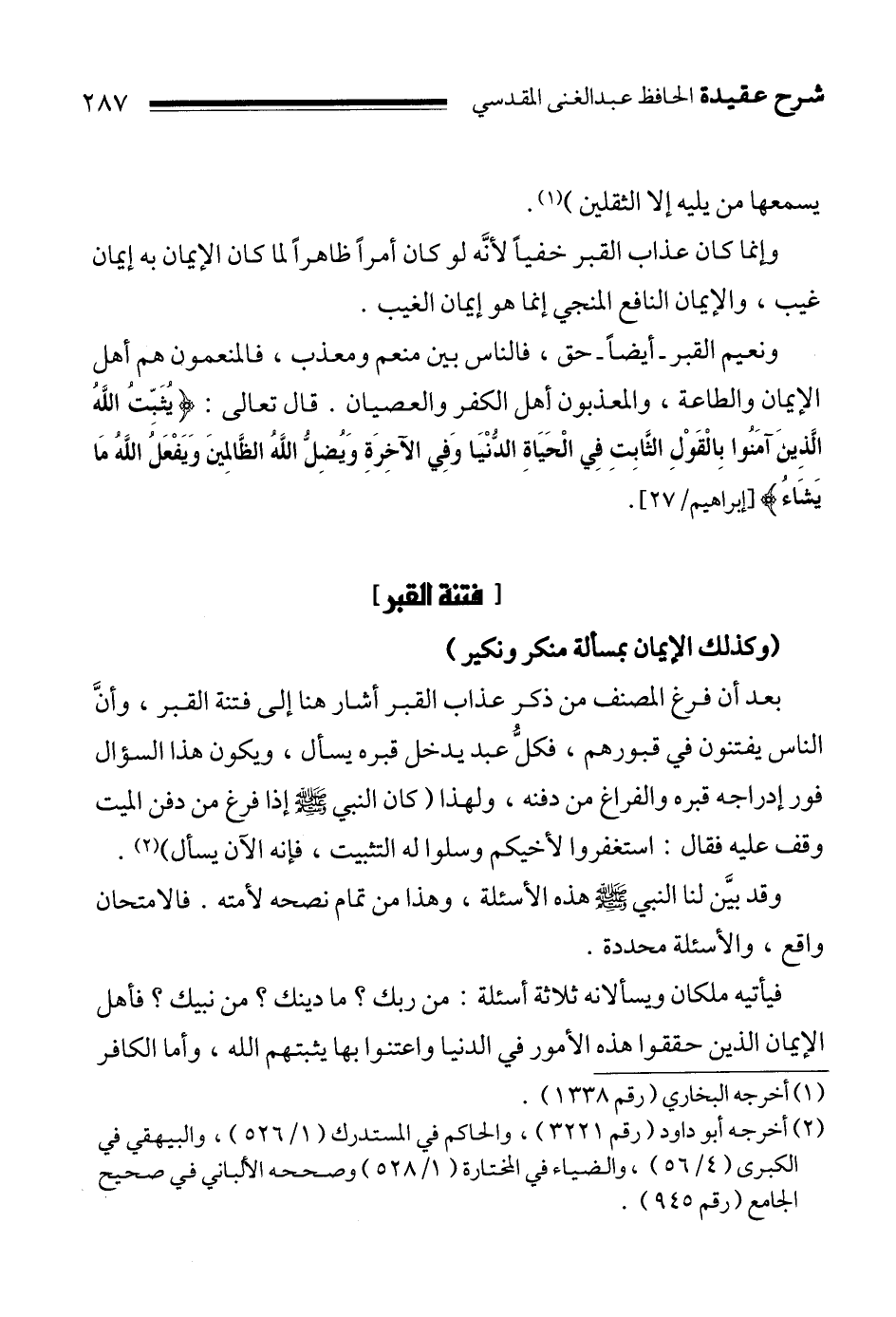 " وكذلك الإيمان بمسألة منكر ونكير "