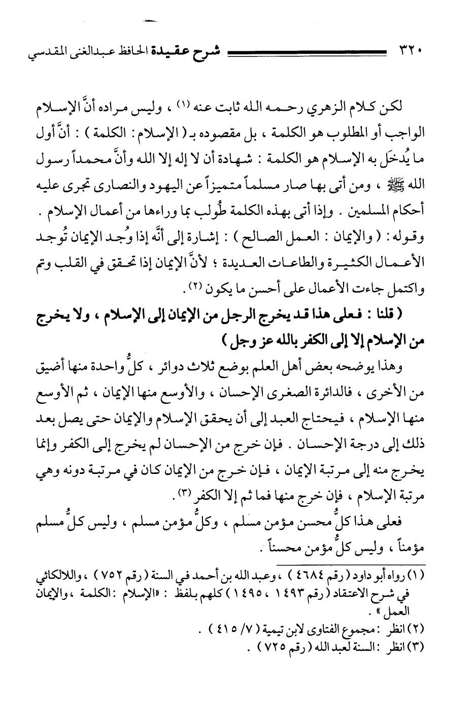 فعلى هذا كلُّ محسن مؤمن مسلم، وكلُّ مؤمن مسلم، وليس كلُّ مسلم مؤمناً، وليس كلُّ مؤمن محسناً.
