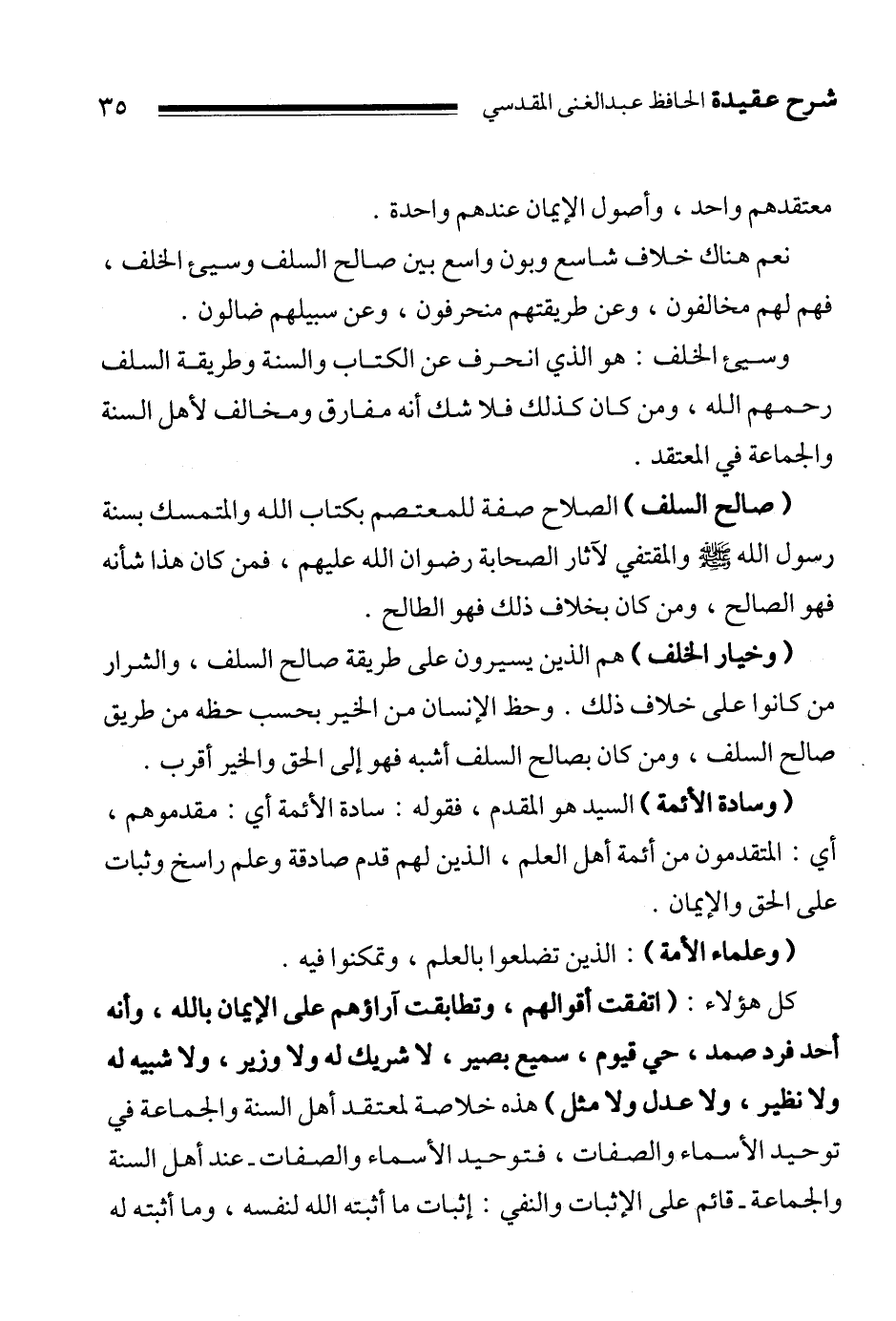 كتاب تذكرة المؤتسي شرح عقيدة الحافظ عبد الغني المقدسي