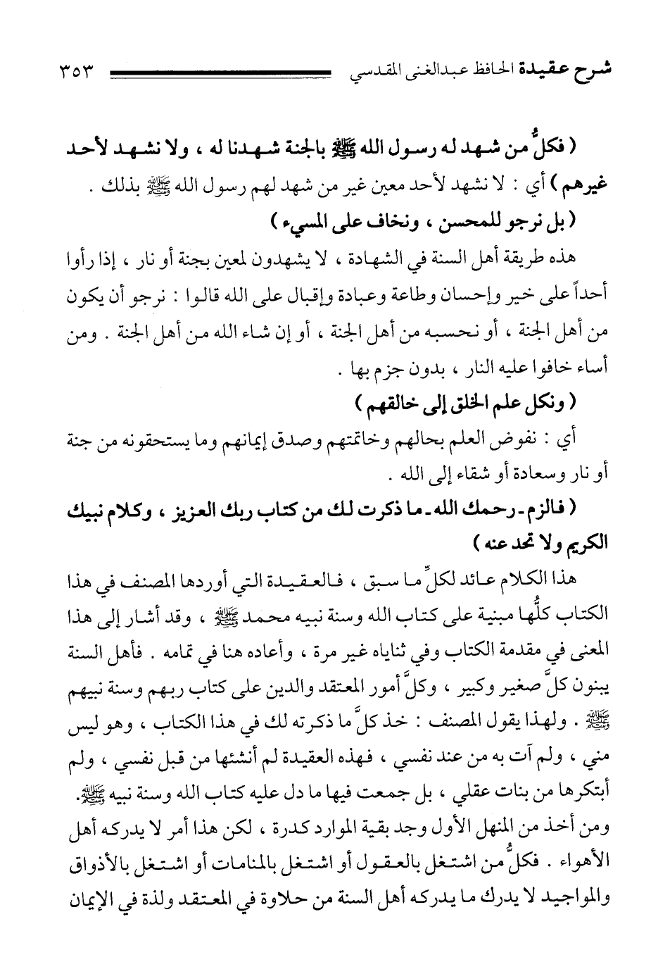 كتاب تذكرة المؤتسي شرح عقيدة الحافظ عبد الغني المقدسي
