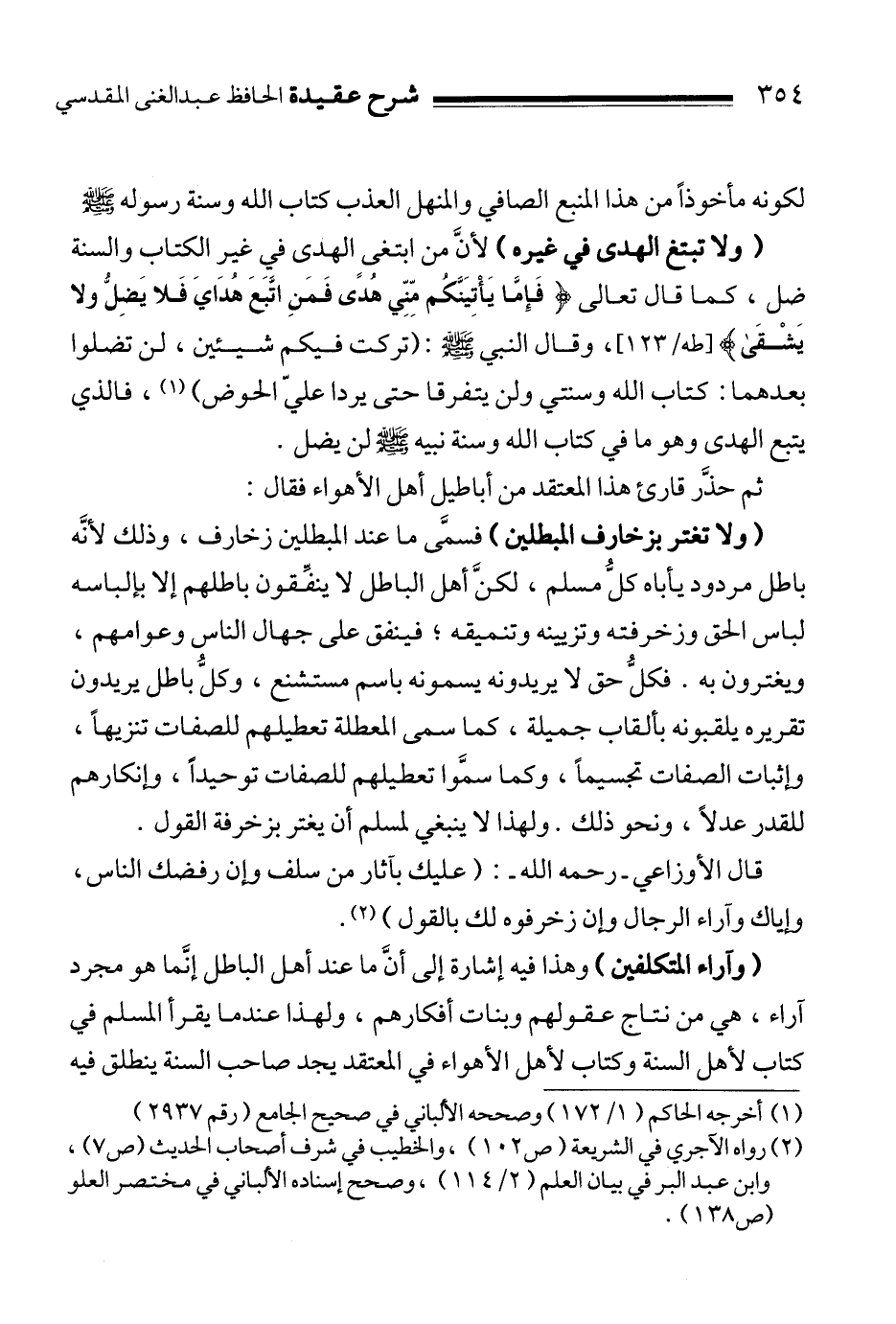 كتاب تذكرة المؤتسي شرح عقيدة الحافظ عبد الغني المقدسي