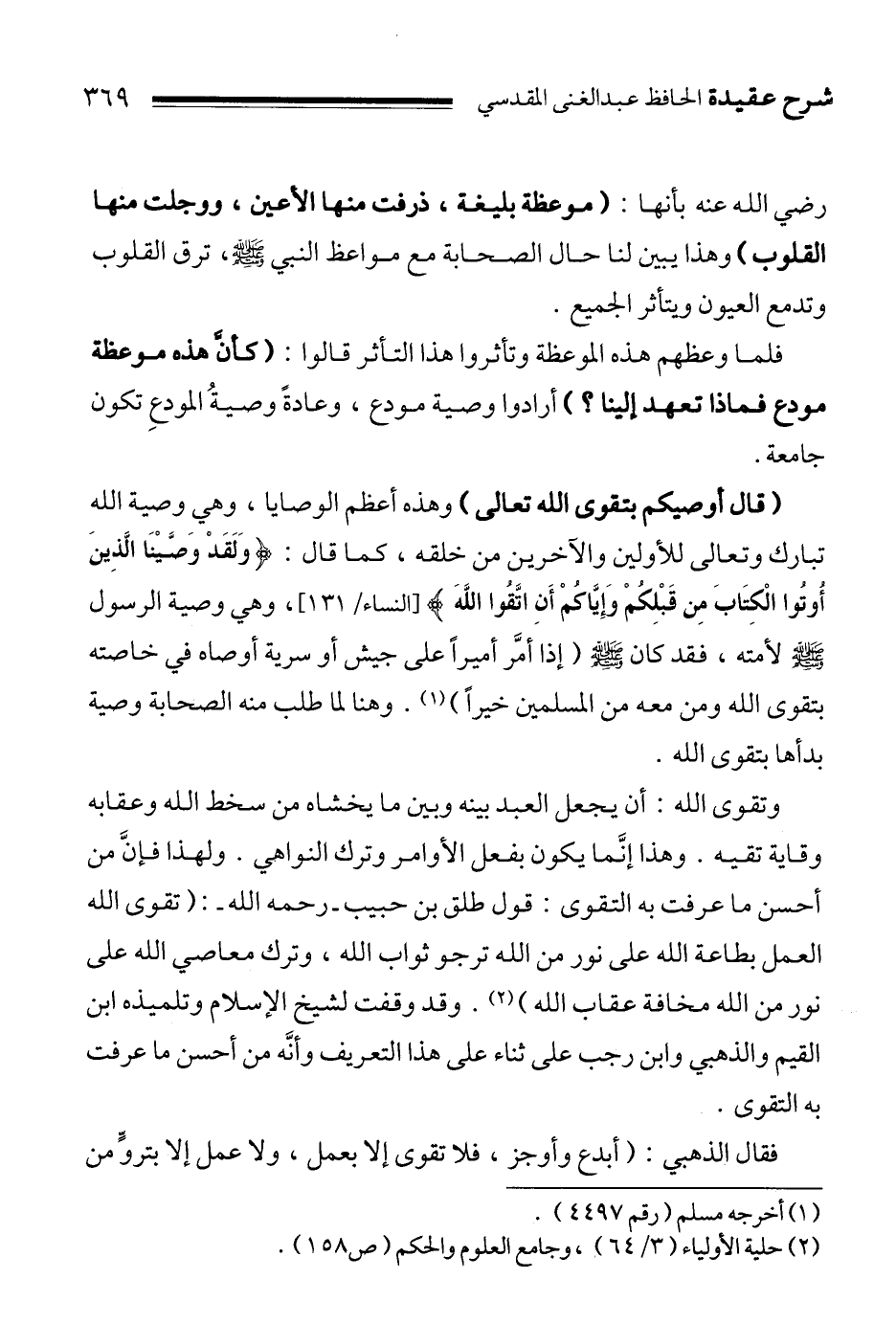 كتاب تذكرة المؤتسي شرح عقيدة الحافظ عبد الغني المقدسي