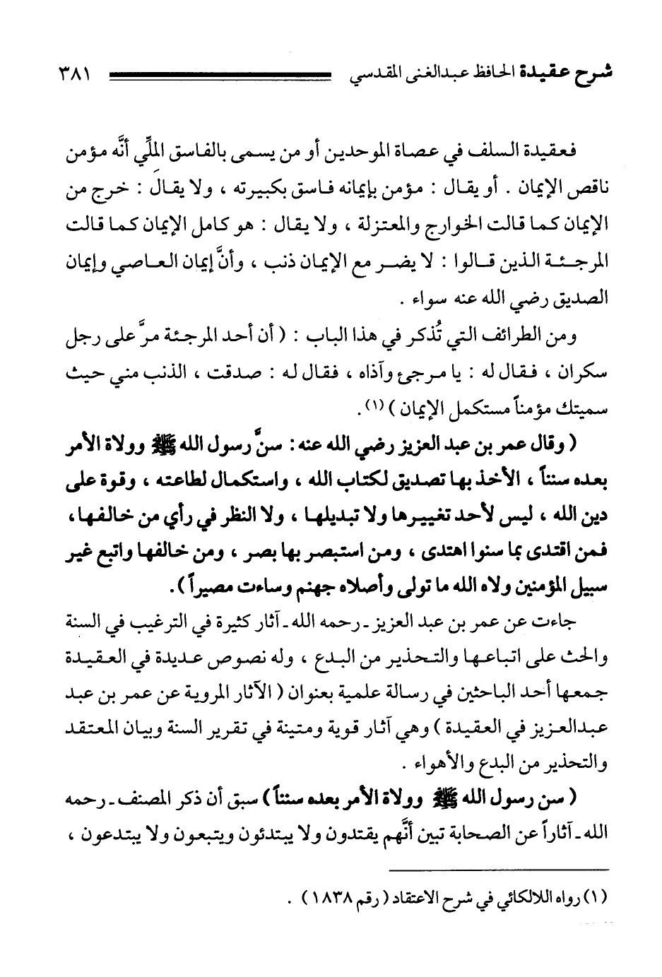 كتاب تذكرة المؤتسي شرح عقيدة الحافظ عبد الغني المقدسي