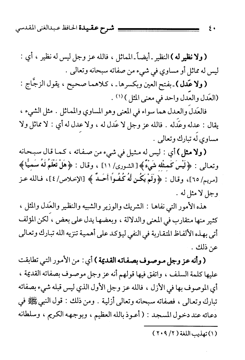 كتاب تذكرة المؤتسي شرح عقيدة الحافظ عبد الغني المقدسي