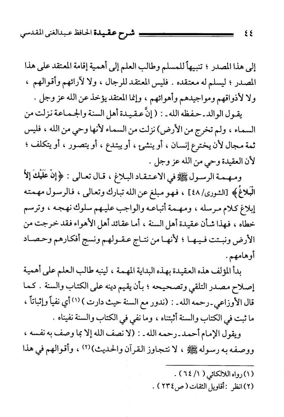 كتاب تذكرة المؤتسي شرح عقيدة الحافظ عبد الغني المقدسي