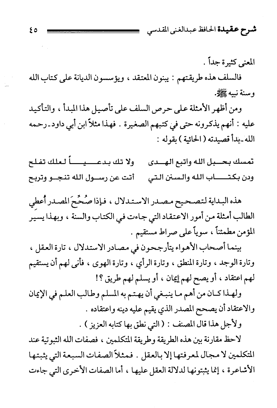 كتاب تذكرة المؤتسي شرح عقيدة الحافظ عبد الغني المقدسي
