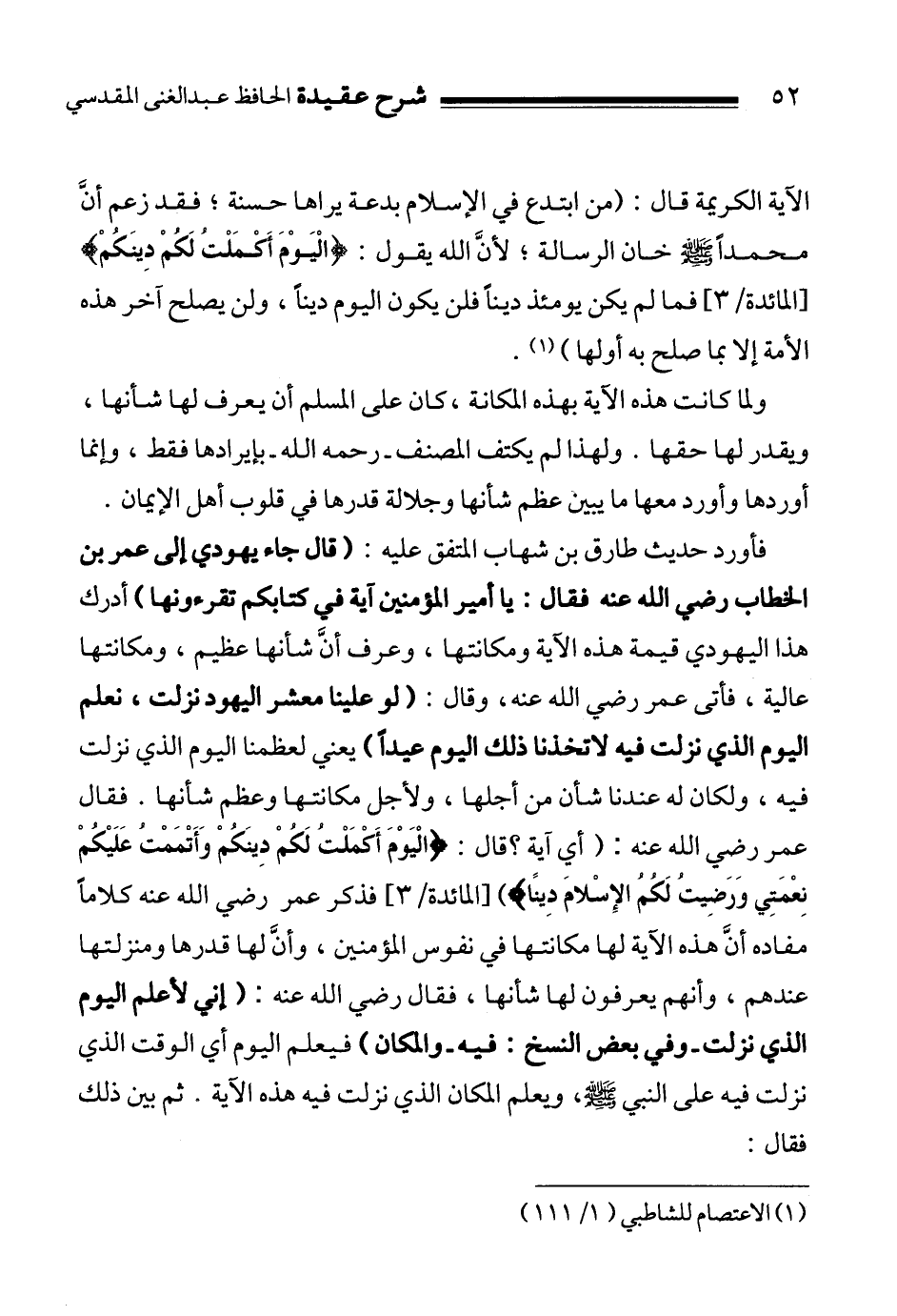 كتاب تذكرة المؤتسي شرح عقيدة الحافظ عبد الغني المقدسي