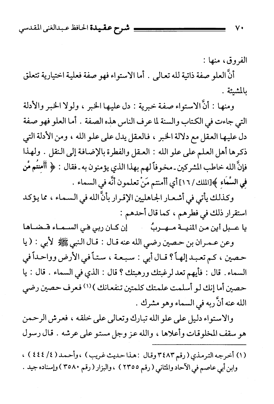 كتاب تذكرة المؤتسي شرح عقيدة الحافظ عبد الغني المقدسي