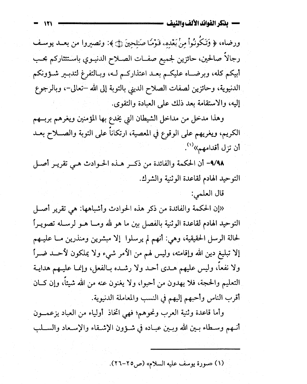 9/ 98 - أن الحكمة والفائدة من ذكر هذه الحوادث هي تقرير أصل