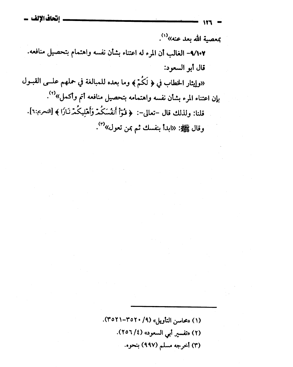 ب! ن اعتناء المرء بشأن نفسه واهتمامه بتحصيل منافعه اتم وكمل " (2).