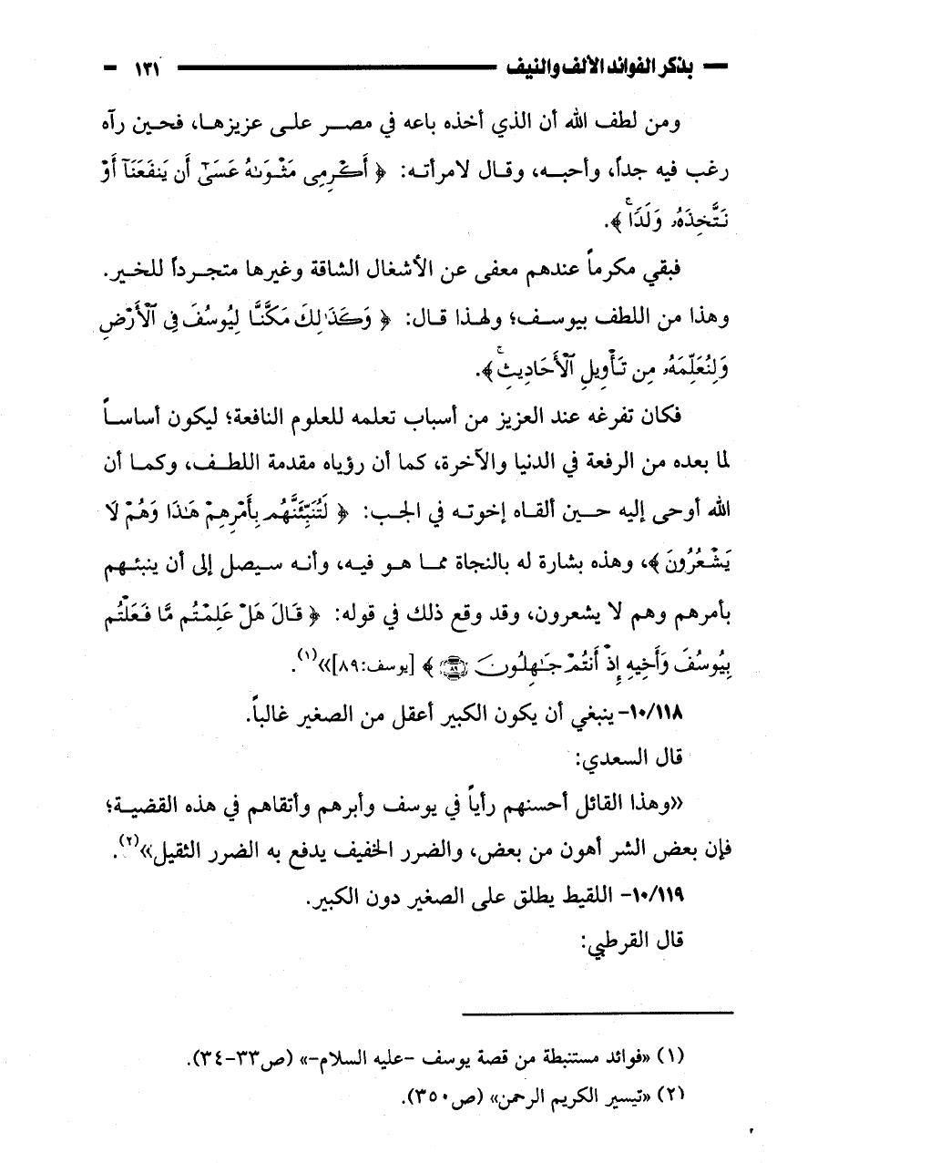 (1) "فوائد مستنبطة من قصة يوسف -عليه السلام -" (ص 33 - 34).
