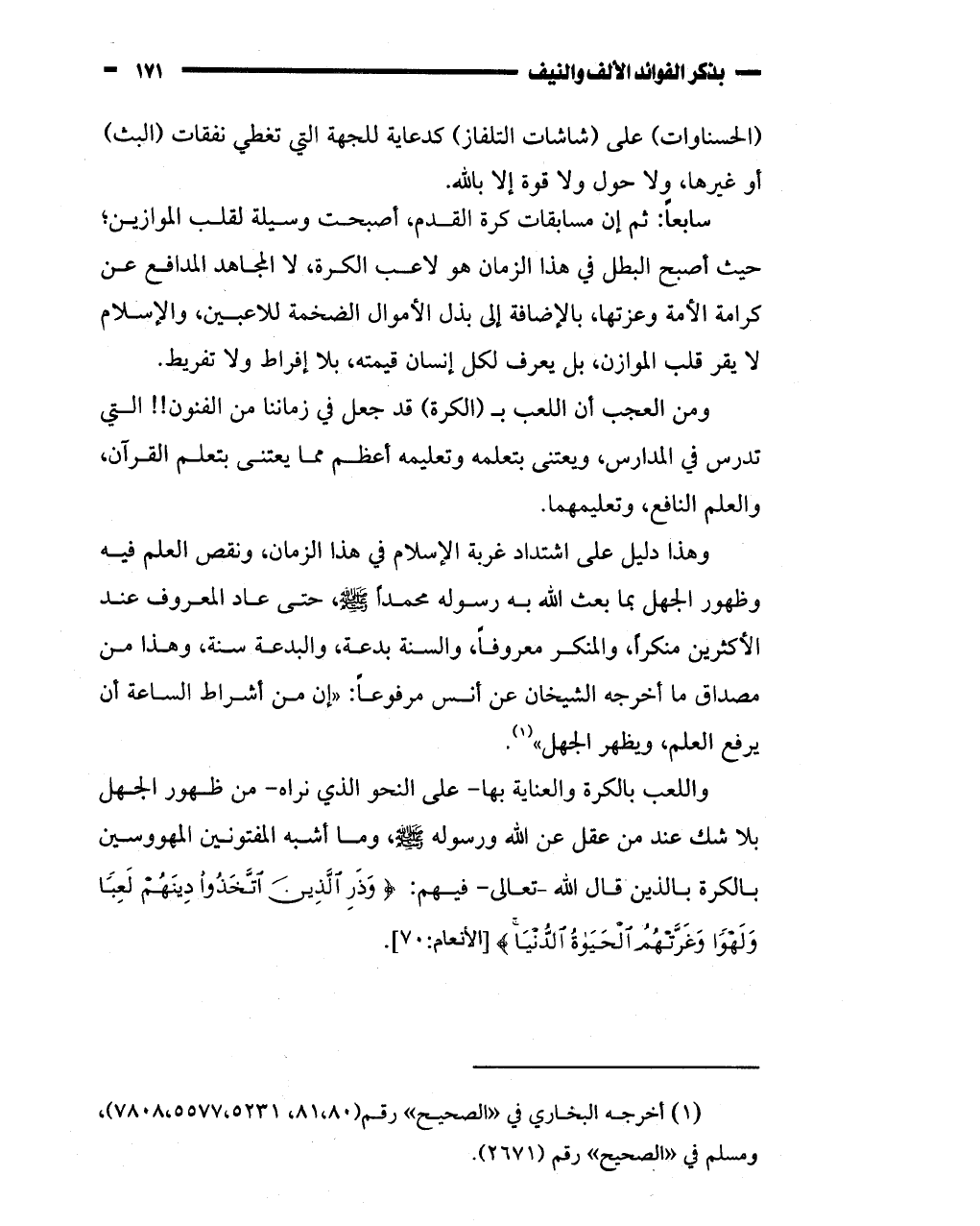 واللعب بالكرة والعناية بها- على النحو الذي نراه - من ظهور الجهل