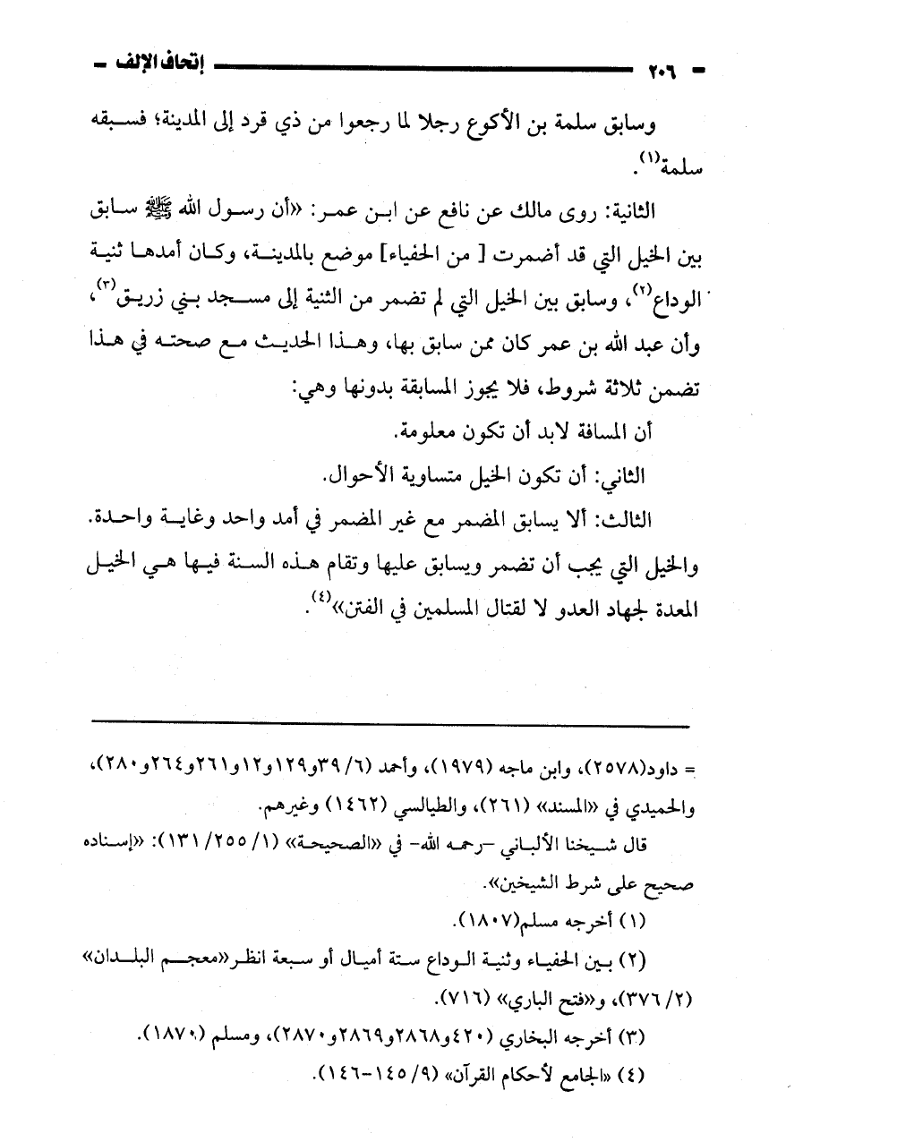 وان عبد الله بن عمر كان ممن سابق بها، وهذا الحديث مع صحته فيئ هذا