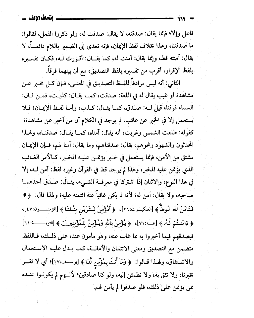 والاشتقاق، ولهذا قالوا: (ومآ أنت بمؤمن لنا! أيوسف:17 ا؟ أي لا تقر