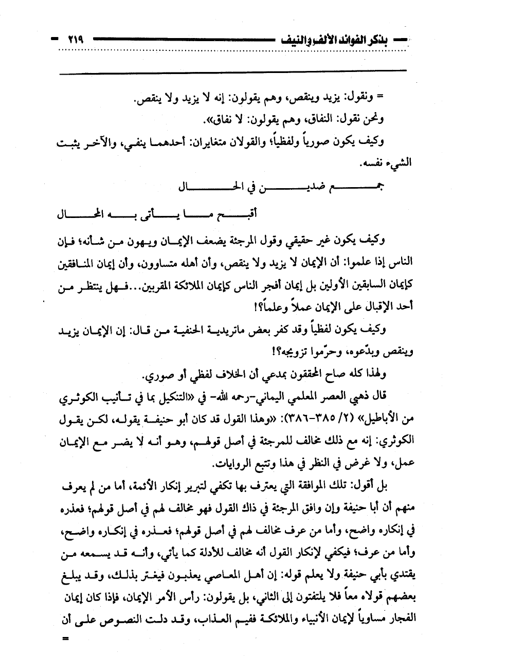 - ونقول: يزيد وينقص، وهم يقولون: إنه لا يزيد ولا ينقص.
