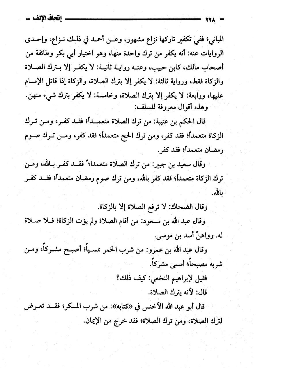 قال الحكم بن عتيبة: من ترك الصلاة متعمدأ؟ فقد كفر، ومن ترك