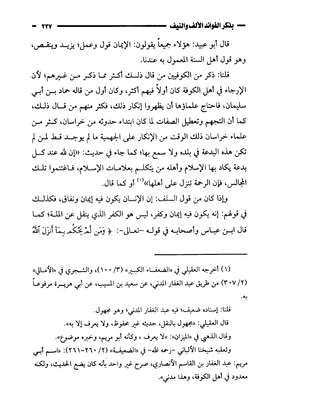 قال أبو عبيد: هؤلاء جميعا يقولون: الإيمان قول وعمل؟ يزيد وينقص،