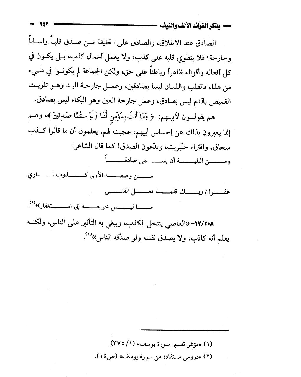 (2) "دروس مستفادة من سورة يوسف،، (ص ه 1).