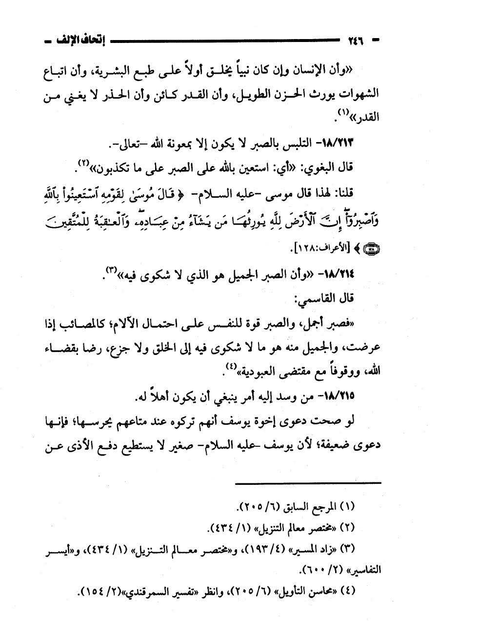 8/ 214 ا- "وأن الصبر الجميل هو الذي لا شكوى فيه" (3).