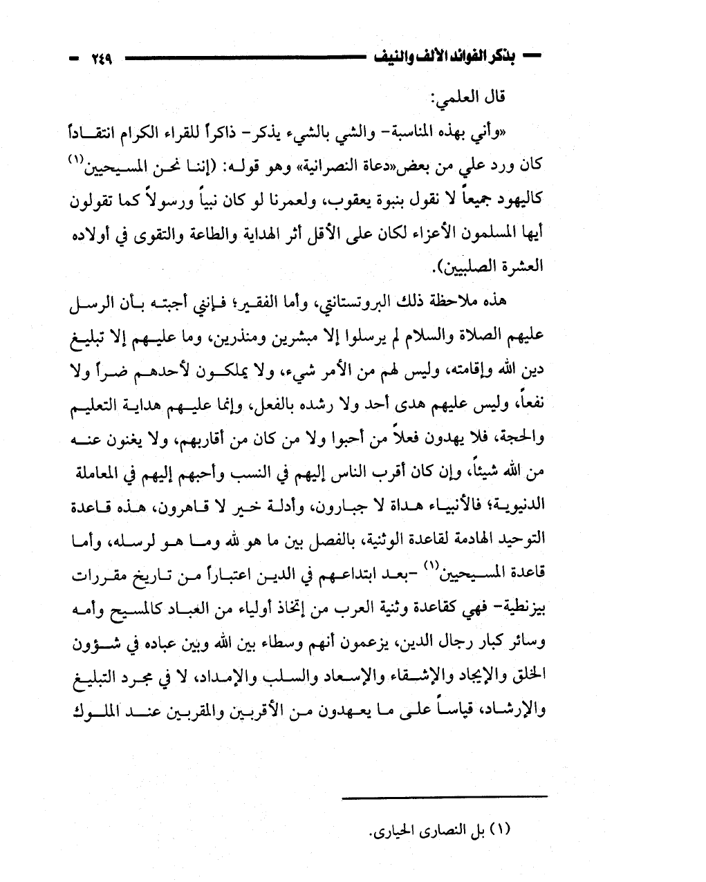 كان ورد علي من بعض"دعاة النصرانية " وهو قوله: (إننا نحن المسيحيين (1)