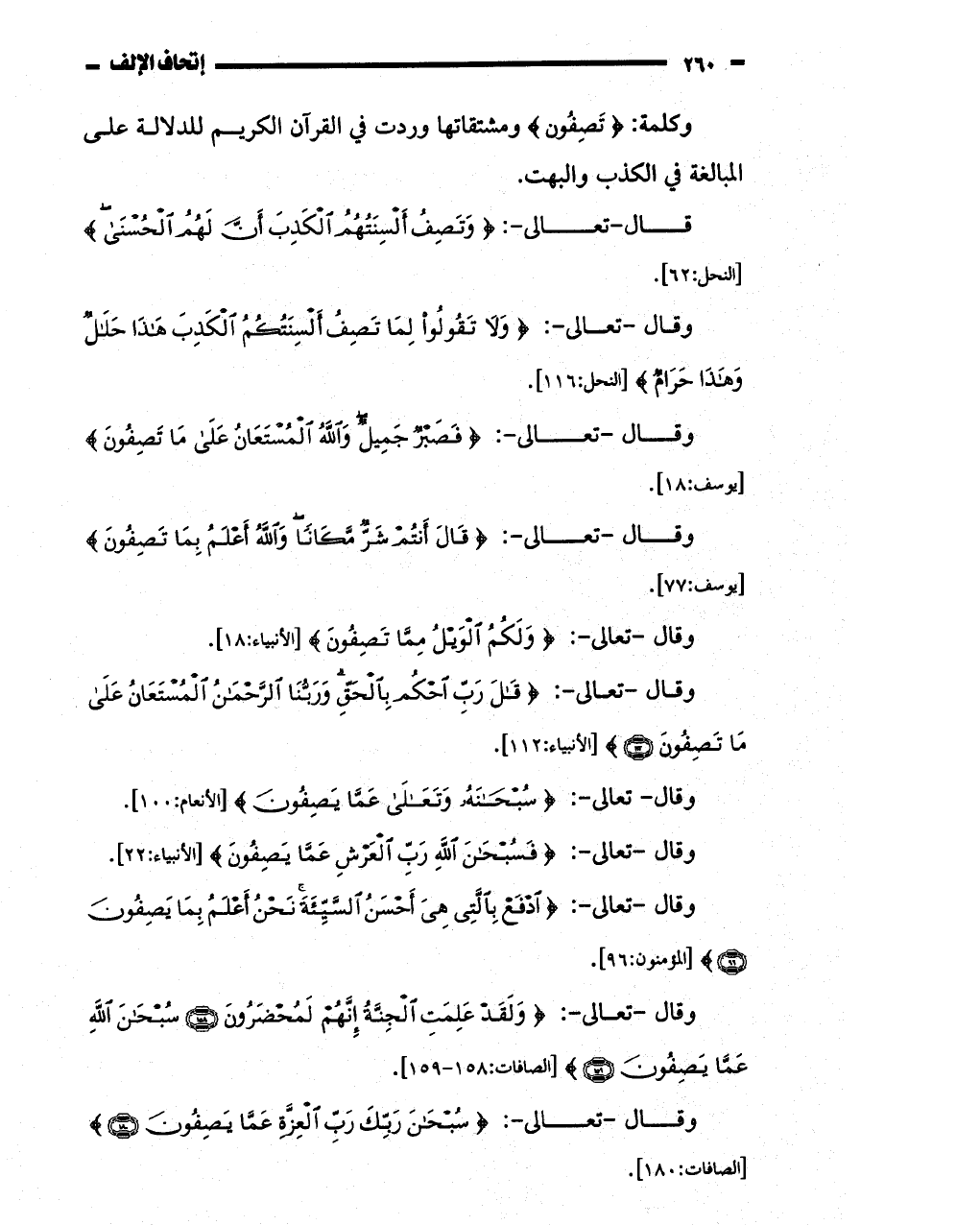 وكلمة: (تصفون " ومشتقاتها وردت في القرآن الكريم للدلالة على