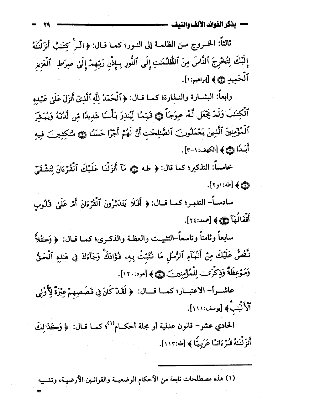 خامسأ: التذكير؟ كما قال: (طه! ما أنزتنا علتك اتقزءان لت! ثتقى