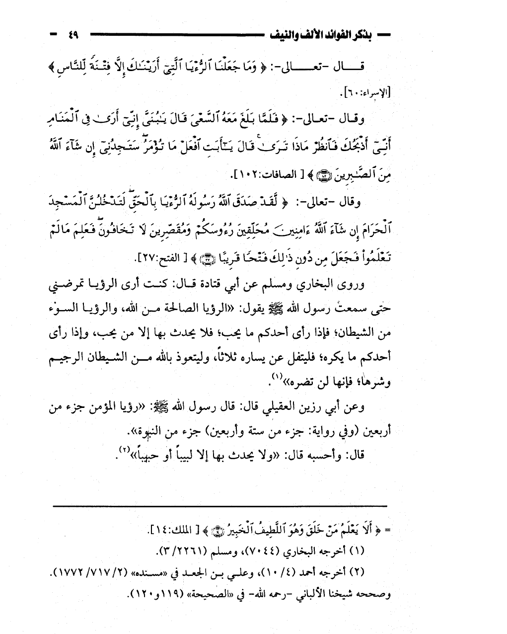 حتى سمعت رسول الله! لمجيم يقول: "الرؤيا الصالحة من الله، والرؤيا السؤء