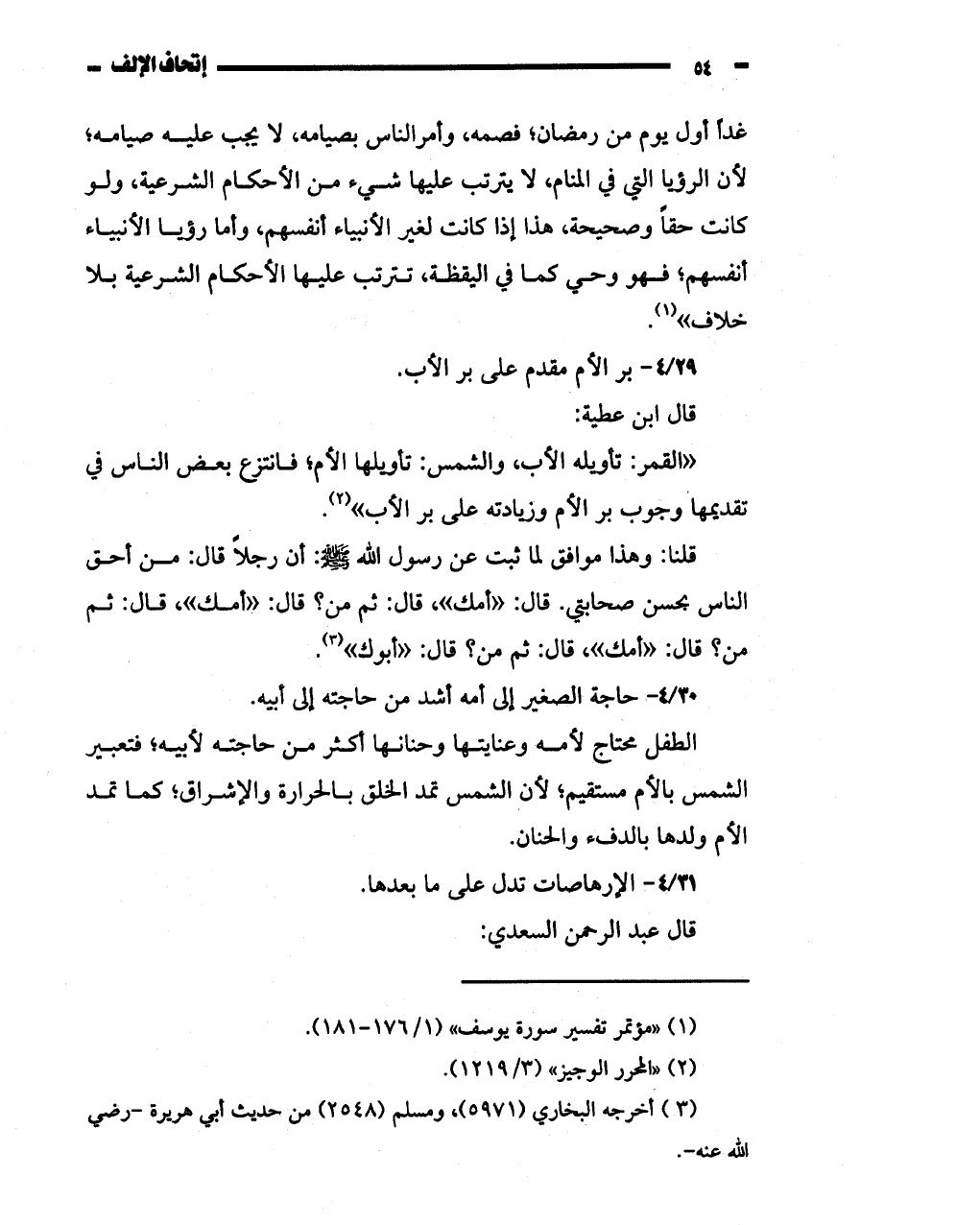 تقديمها وجوب بر الأم وزيادته على بر الأب " (2).