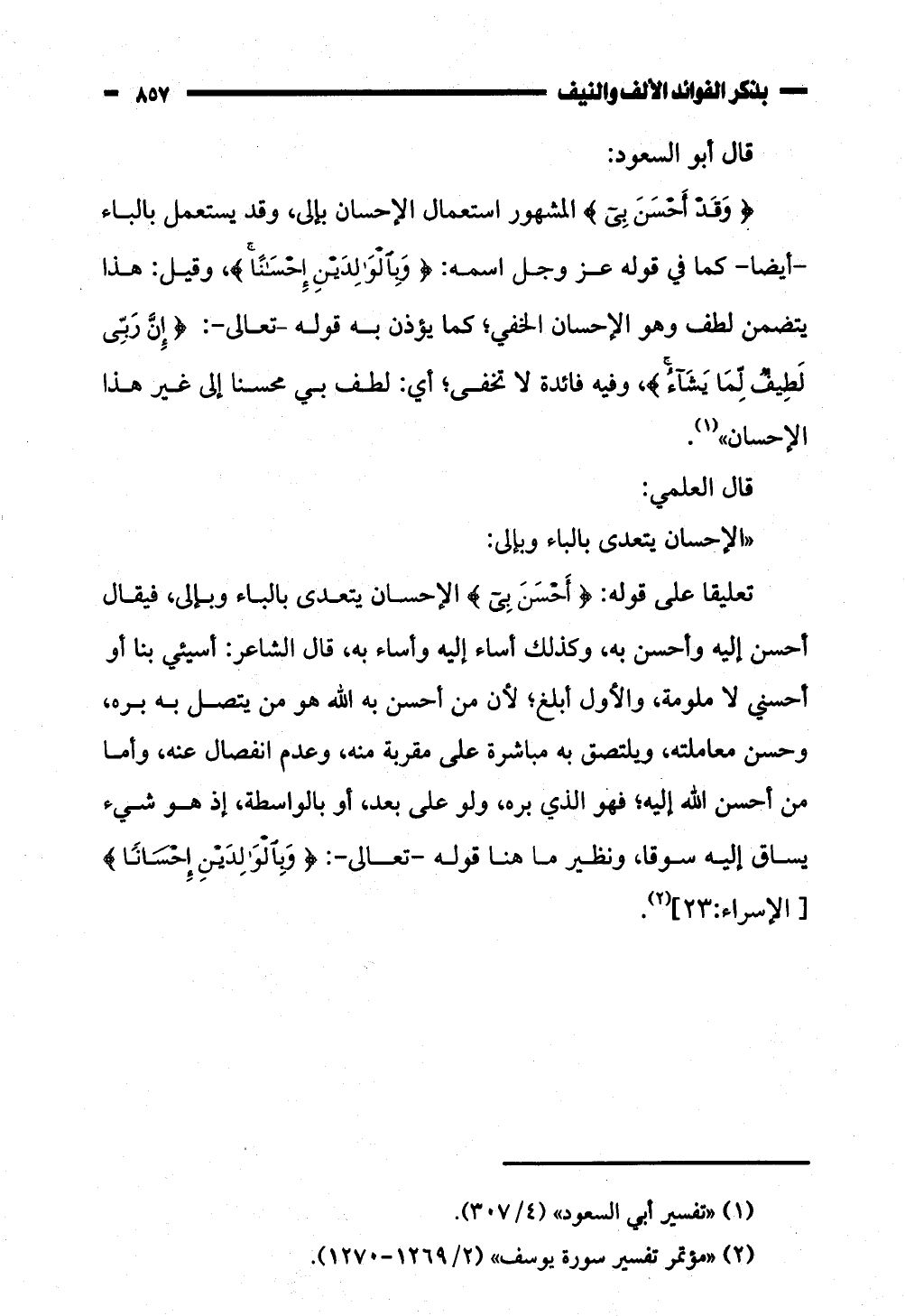 تعليقا على قوله: (أخسن بى) الإحسان يتعدى بالباء وب! لى، فيقال