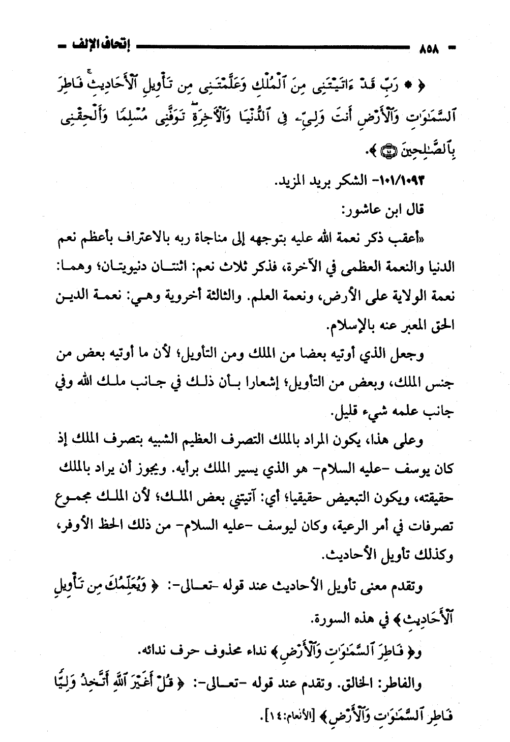 1 5 رب قذ ءاتتتنى من الملك وعلقتنى من تاويل آلأحاديثأ فاطر
