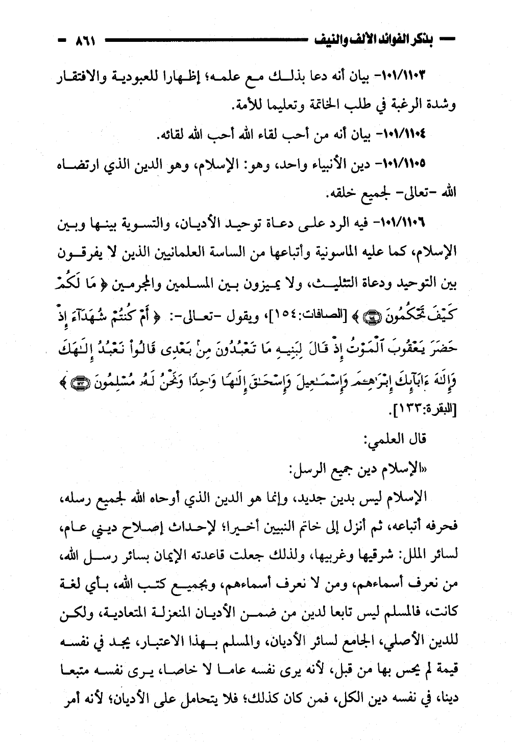 101/ 1105 - دين الأنبياء واحد، وهو: الأسلام، وهو الدين الذي ارتضاه