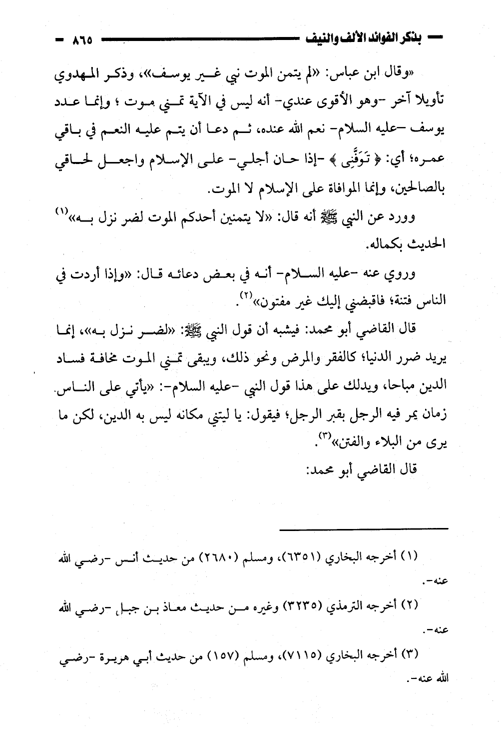 وورد عن الني لمخيم أنه قال: "لا يتمنين أحدكم الموت لضر نزل به" (1)