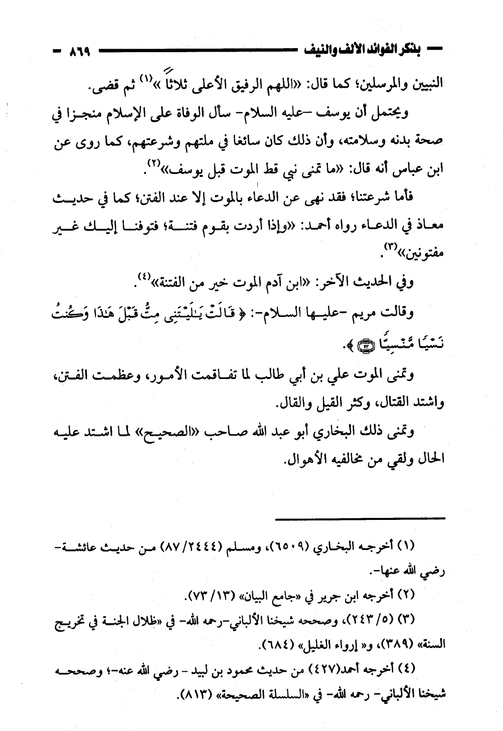 (1) أخرجه البخاري (9 5 65)، ومسلم (44 24/ 87) من حديث عائشة-