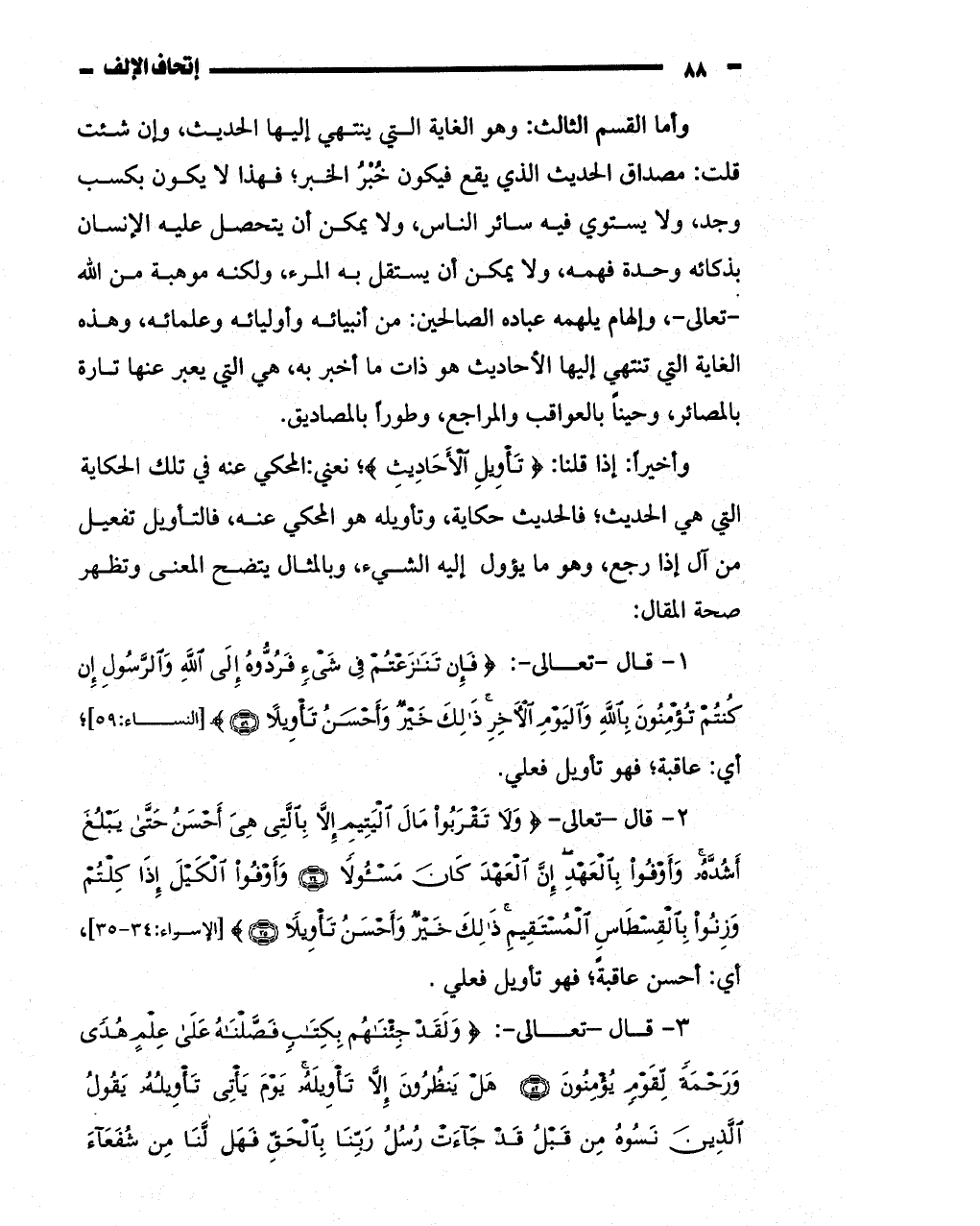 التي هي الحديث؟ فالحديث حكاية، وتأويله هو المحكي عنه، فالتأويل تفعيل