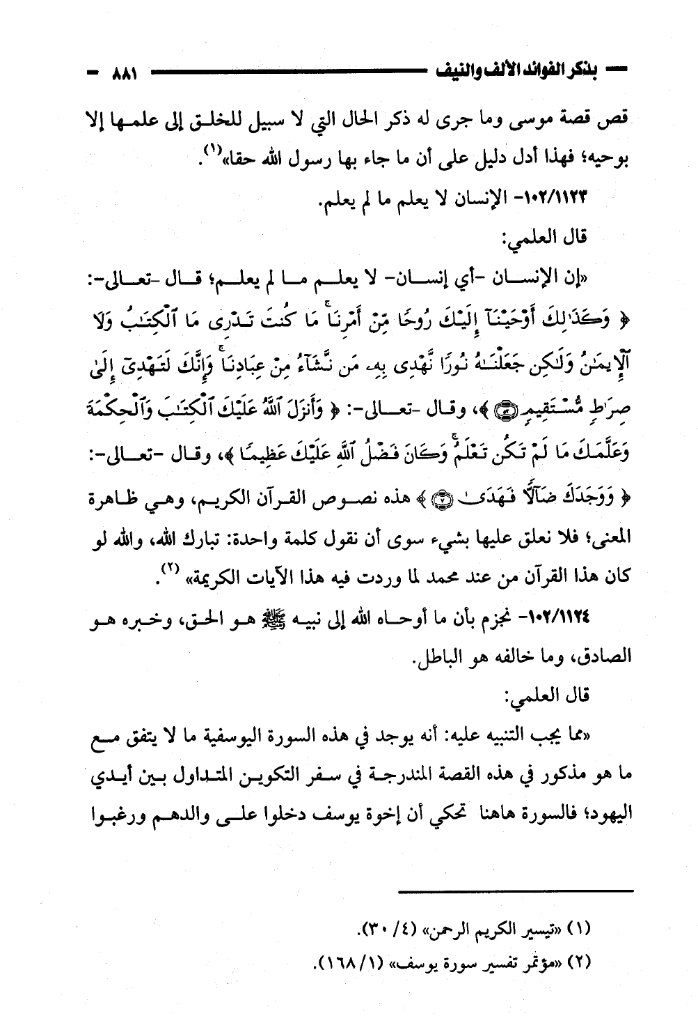 (1) "تيسير الكريم الرحمن،، (4/ 30).
