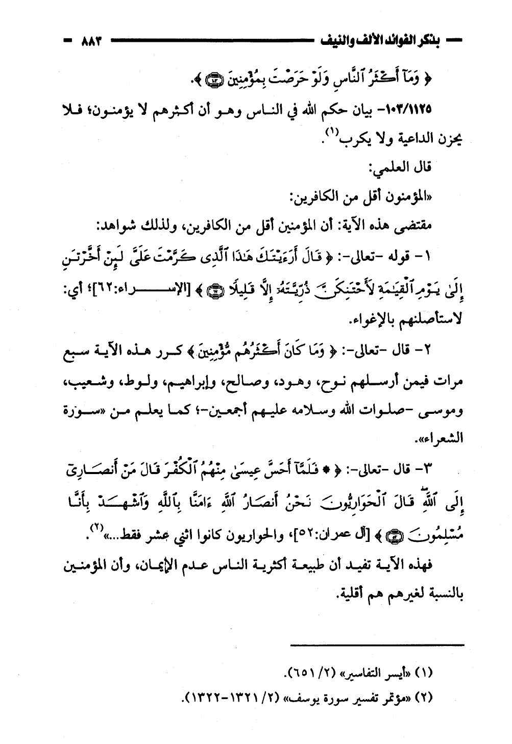 03/ 1125 ا- بيان حكم افه في الناس وهو أن كثرهم لا يؤمنون، فلا