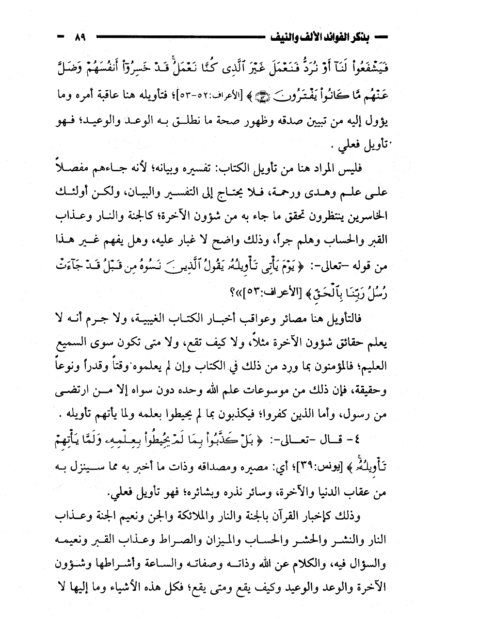 والسؤال فيه، والكلام عن الله وذاته وصفاته والساعة وأشراطها وشؤون