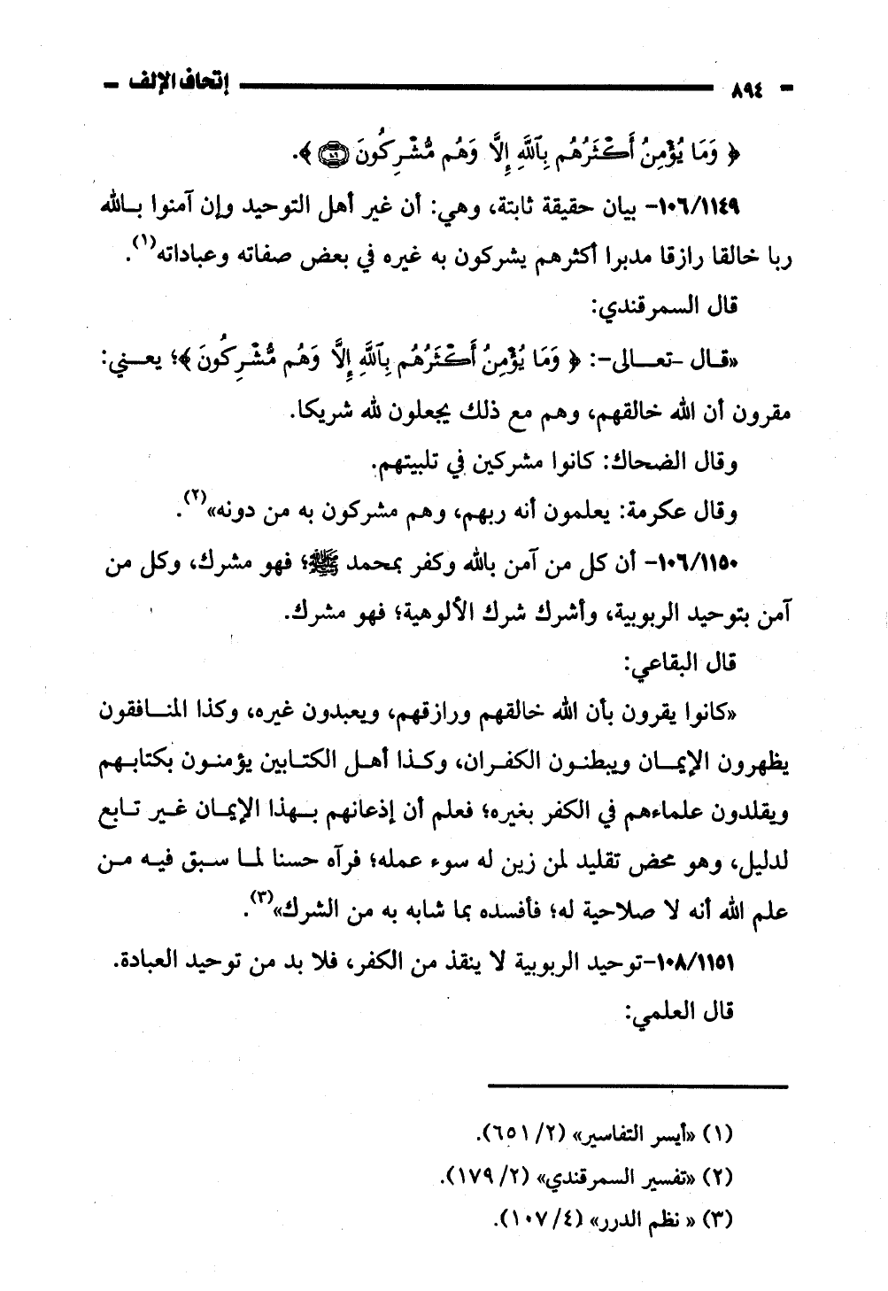 "قال تعالى -: (وما يومن ا! ثرهم بالله إلا وهم مشركون!؟ يعني: