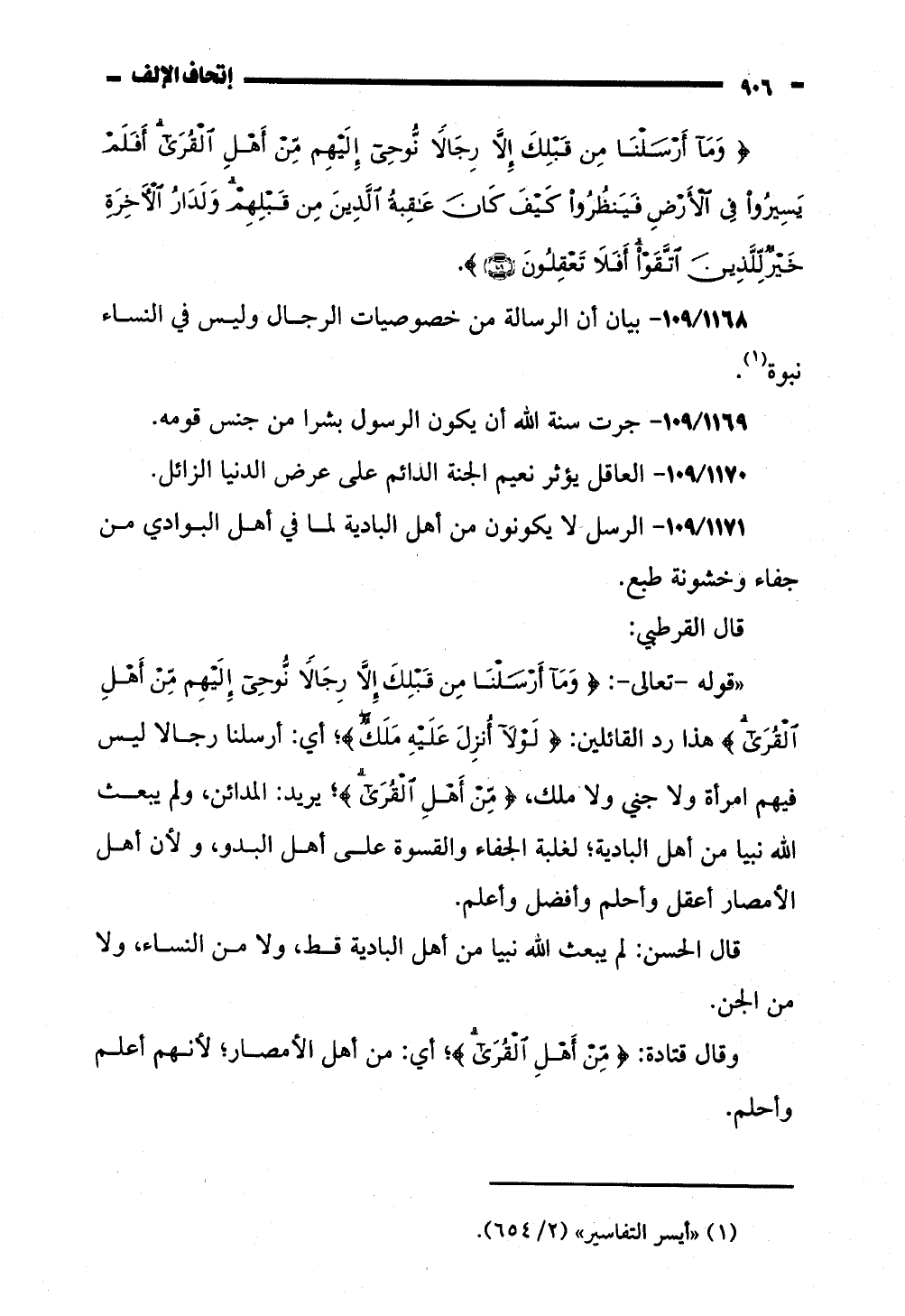 171 ا! ه. ا- الرسل كالا يكونون من اهل البادية لما في أهل البوادي من
