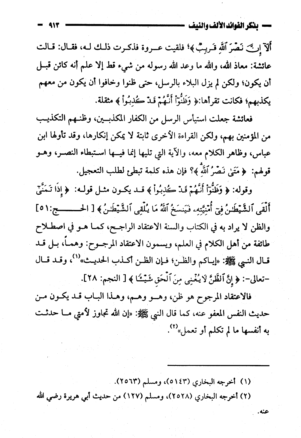 يكذبهم؟ فكانت تقرأها: (وظنوا أنهتم قد صدبوا! مثقلة.