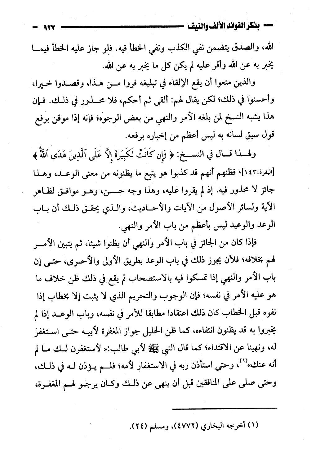 الوعد والوعيد ليس بأعظم من باب الأمر والنهي.