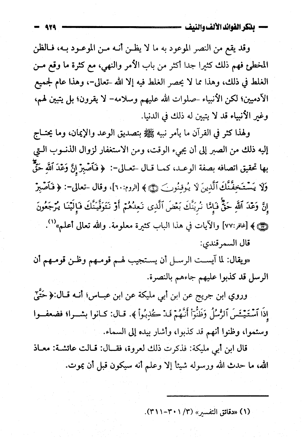 ولهذا كثر في القرآن ما يأمر نبيه! شي! بتصديق الوعد والإيمأن، وما يحتاج