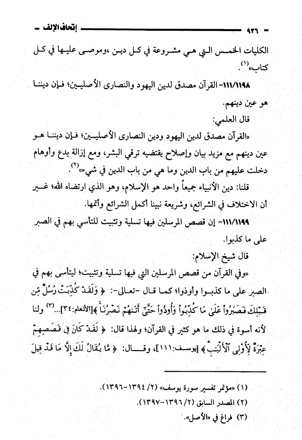 0) 11/ 1198 ا- القرآن مصدق لدين اليهود والنصارى الأصليين، فإن ديننا
